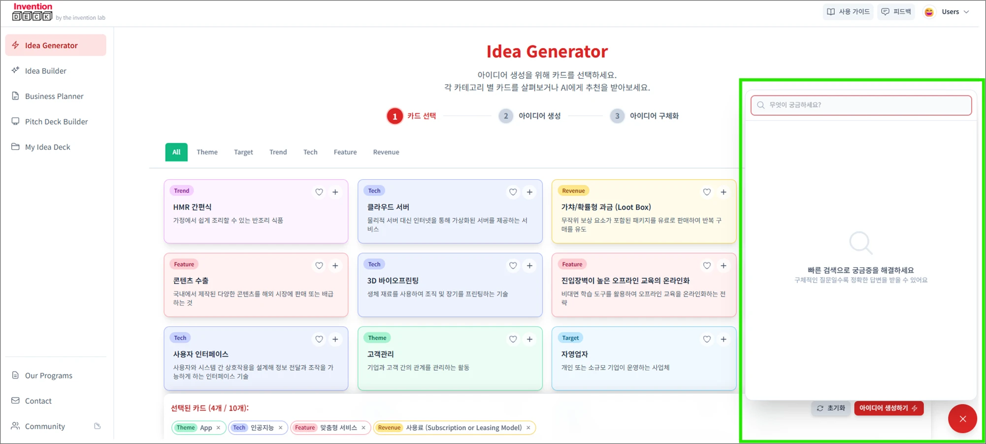 복잡하게 여러 페이지를 돌아다니며 찾아볼 필요없이 인벤션덱AI 안에서 쉽게 질의응답이 가능합니다.